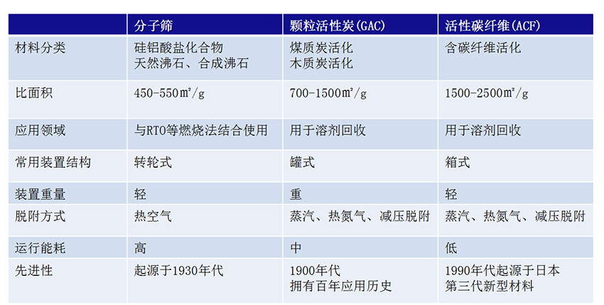 活性碳纤维与其它吸咐材料比较