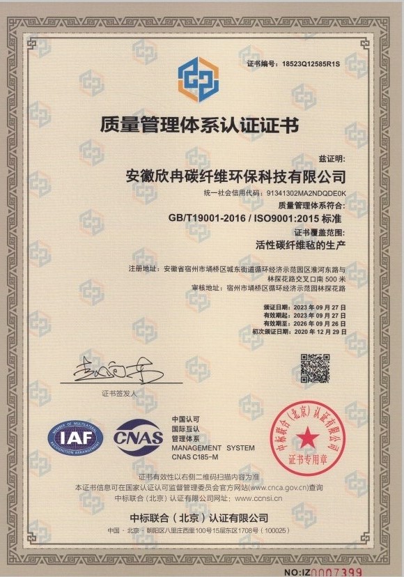 质量管理体系符合标准: GB/T19001-2016 IDT IS09001 : 2015